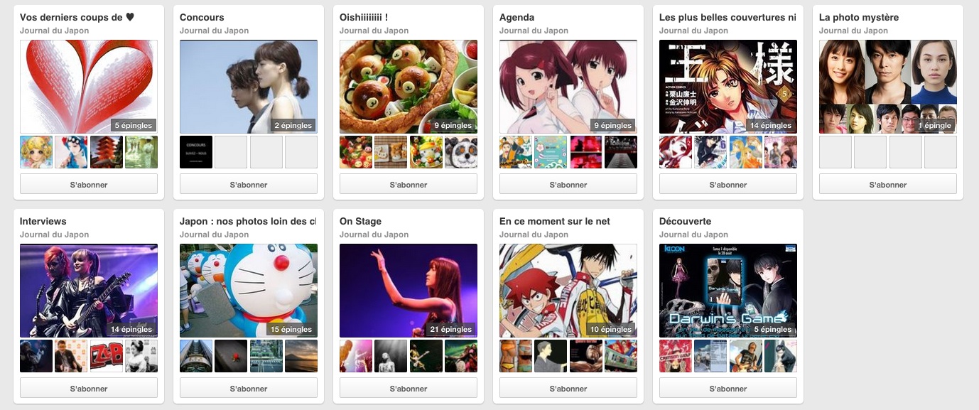 Un aperçu des tableaux Pinterest de Journal du Japon