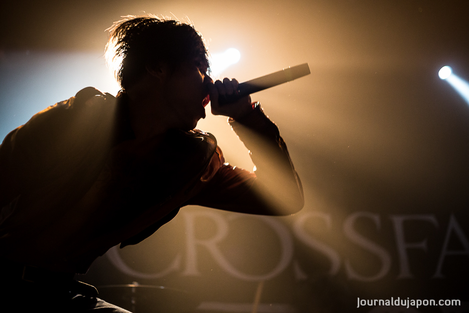 Pour nous mettre dans l’ambiance, rien de tel qu’un interlude électro/dance/dumbstep estampillé « made in CROSSFAITH », annonçant inlassablement le compte à rebours avant l’entrée sur scène du quintet.
