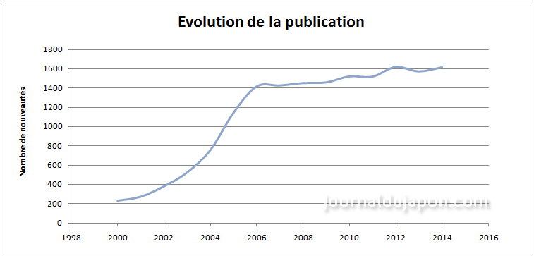 Après une explosion de la publication qui a vu le nombre de sorties être multiplié par 10 en 10 ans, le nombre de sorties de manga enchaîne désormais augmentations et pauses depuis 2006 : on y publiait alors 1418 volumes soit 12% de moins, seulement, par rapport à 2014.