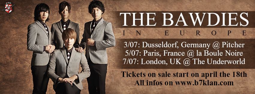 – Le groupe THE BAWDIES sera en tournée en Europe pour la toute première fois avec B7Klan . Pour nous français une seule date le dimanche 5 juillet à la Boule noire. Les tickets seront en vente à partir du 18 avril sur le site du tourneur.