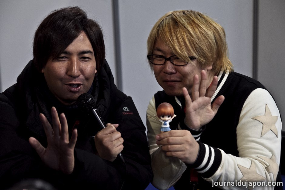 Sushio : Quand j’étais plus jeune, au lycée, j’avais la côte avec les filles. Quand je suis rentré dans une école spécialisée sur le manga, j’avais la côte avec les filles otaku, et en rentrant dans le monde de l’animation, j’ai encore plus la côte avec les filles otaku. Et bien sûr, tout ça, c’est dans ma tête que je l’espère.(Rires)