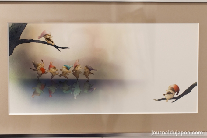 Du 18 au 26 avril 2015, l’espace Beaurepaire a exposé 91 dessins originaux. Des œuvres que Yôko IMOTO a voulu faire découvrir au public parisien et d’une joliesse à faire renaître les âmes d’enfants oubliées. Extrêmement tendres, tout en précision et en harmonie, les dessins revêtent des nuances tout droit sorties des rêves de coton, gamins et familiers. Des teintes pastel rehaussées ici et là de couleurs vives.