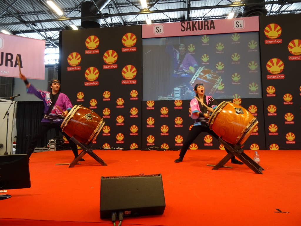 Le vendredi après-midi sur la scène Sakura, sous l’appellation « Les arts traditionnels japonais » nous avons ainsi pu assister à une présentation sur les tambours taiko et la danse awa odori, au centre des fêtes de quartiers populaires au Japon.