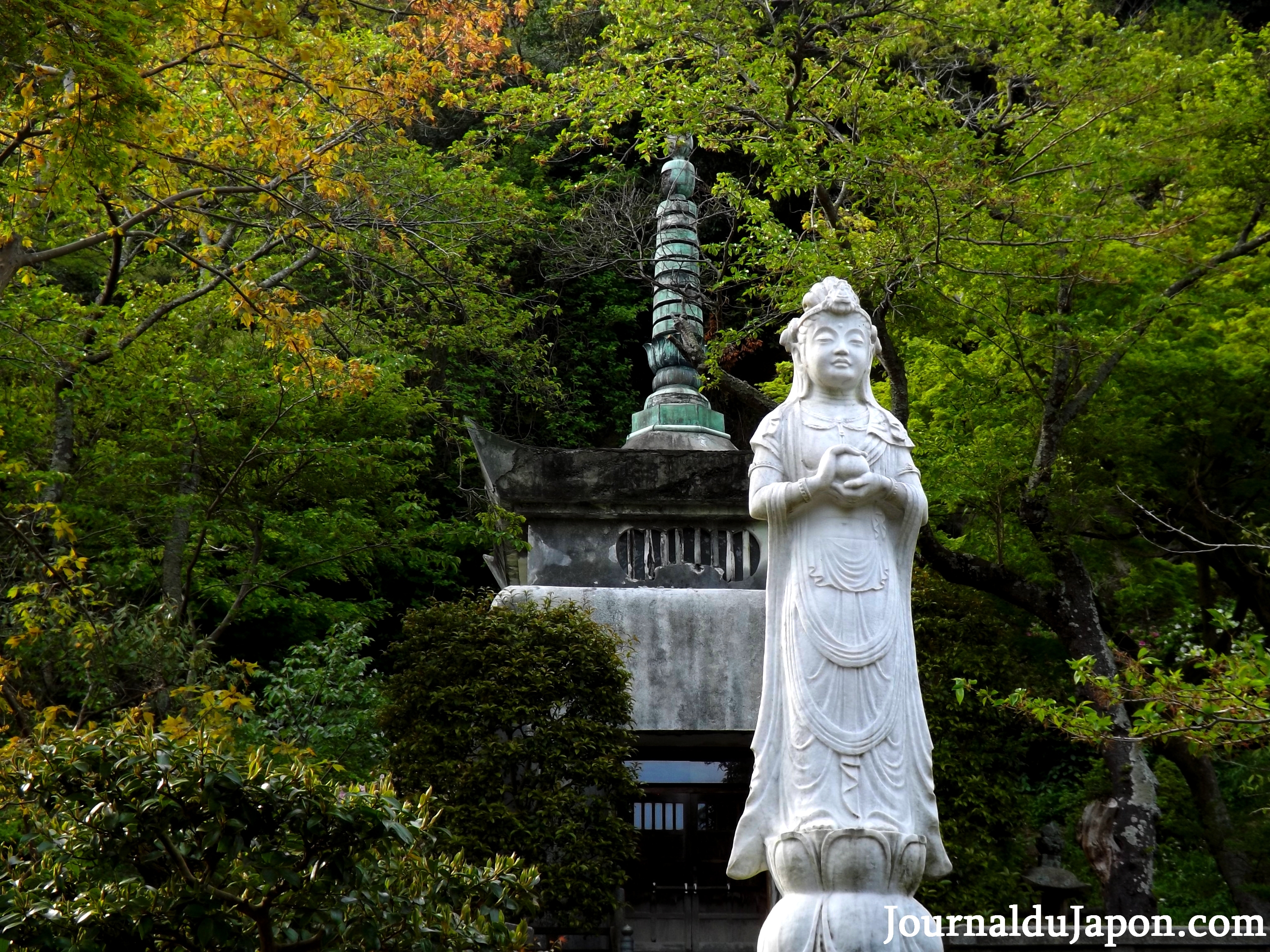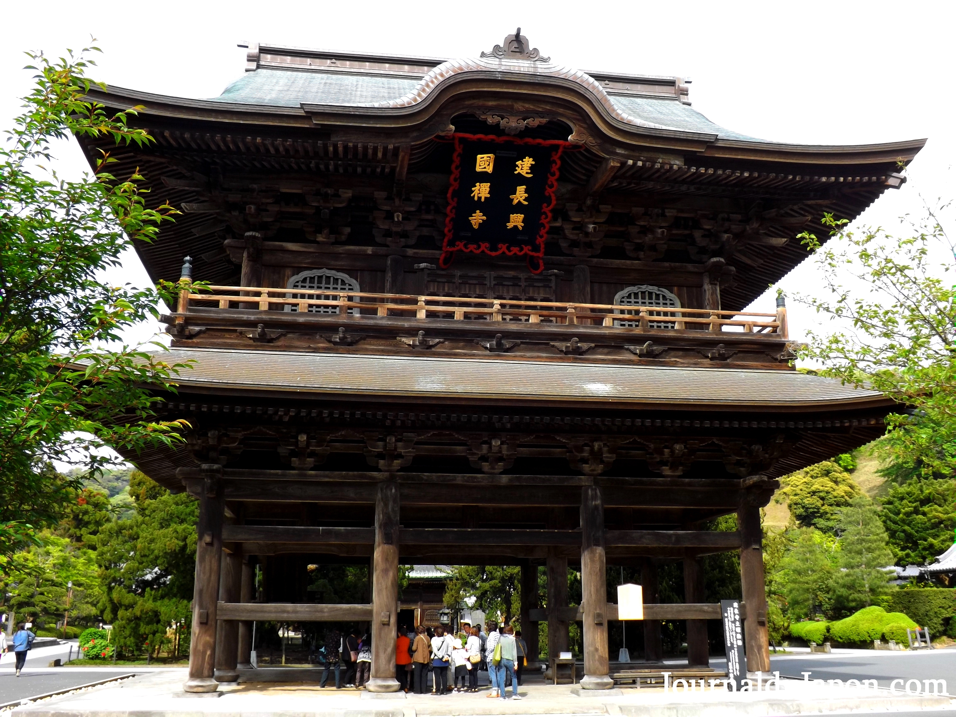 Une fois revenu à la gare, portez votre attention sur le panneau affichant la carte des principaux sites touristiques de la ville afin de sélectionner un itinéraire correspondant à vos envies. Il y a tellement de temples à Kamakura qu’il faudrait la journée pour en faire le tour, alors nous en avons sélectionné deux parmi les plus importants afin d’avoir du temps pour le reste de la journée. Pour atteindre notre premier choix, le temple Kencho-ji, il faut compter environ 20 minutes de marche. Datant du XIIIe siècle, il est toujours en activité de nos jours et il n’est d’ailleurs pas rare de croiser des riverains venu pour méditer. De plus il s’agit du plus ancien temple d’obédience Zen du Japon, ce qui en fait donc un lieu d’une importance considérable sur le plan spirituel. Le prix d’entrée de 2,50 euros est tout à fait compréhensible lorsque l’on déambule dans ce gigantesque site, sans commune mesure avec les temples que l’on peut trouver à Tokyo. La végétation luxuriante se mêle aux différents édifices et statues composant le Kencho-ji. Certaines parties comme le Butsuden, le pavillon du bouddha, furent importés de Tokyo au XVIIe siècle. Dernier point, la statue du Jizo Bosatsu, la divinité chargée d’aider les âmes perdues à trouver le salut nous rappelle qu’autrefois, la vallée sur laquelle se trouve le temple fut un lieu d’exécution.