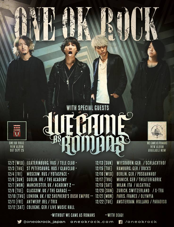 – Le groupe rock ONE OK ROCK est de retour en Europe pour une longue tournée de 17 dates à travers tout le continent. Il s’arrêtera pour une date unique en France à Paris.