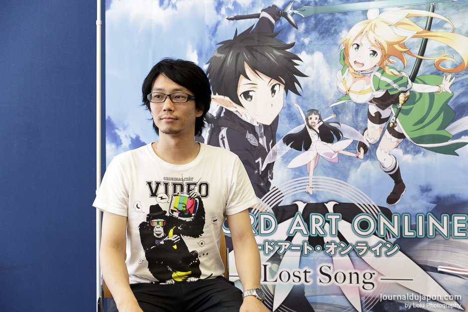 La présence des producteurs derrière une œuvre étant plutôt discrète, il est normal que son nom n’évoque rien pour ceux qui ne travaillent pas de l’autre côté de la scène. Pourtant, Yôsuke FUTAMI est sur les jeux vidéo de Sword Art Online depuis un moment : « Mon tout premier travail sur SAO a été sur Infinity Moment sur PSP, il y a de ça quelques années déjà. » Pour lui, l’attrait de la série se situe « dans ses personnages de manière générale, celui que je préfère étant Sinon. Non seulement elle est mignonne (Rires), mais elle a également une façon de vivre à laquelle je peux m’identifier. Cela me touche parce qu’elle vit le jeu de manière intense et ressent aussi bien de la frustration dans le réel que dans le virtuel. Ses petits tracas d’adolescente savent toucher mon petit cœur ! » À l’image de son personnage préféré, FUTAMI ne cache pas son amour pour les jeux en ligne : « je suis définitivement un gros joueur, en ce moment je joue à Final Fantasy XIV. Mais parmi les différents supports sur lesquels existe SAO, je choisirais… Le jeu ! (Rires) Je plaisante bien sûr, je suis un grand fan du roman original. »