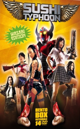 14 films du label japonais fou Sushi Typhoon Sélectionnés dans tous les festivals fantastiques les plus reconnus dans le monde, vous attendent dans une édition intégrale 14 DVD : Death Trance (2005) de Yûji Shimomura, Machine Girl (2008) de Noboru Iguchi, Tokyo Gore Police (2008) de Yoshihiro Nishimura, RoboGeisha (2009) de Noboru Iguchi, Samurai Princess (2009) de Kengo Kaji, Vampire Girl vs. Frankenstein Girl (2009) de Yoshihiro Nishimura & Naoyuki Tomomatsu, Helldriver (2010) de Yoshihiro Nishimura, Gothic & Lolita Psycho (2010) de Gô Ohara, Karate Robo-Zaborgar (2011) de Noboru Iguchi, Tomie: Unlimited (2011) de Noboru Iguchi, Yakuza Weapon (2011) de Tak Sakaguchi & Yudai Yamaguchi, Deadball (2011) de Yudai Yamaguchi, Zombie Ass (2011) de Noboru Iguchi, Dead Sushi (2012) de Noboru Iguchi.
