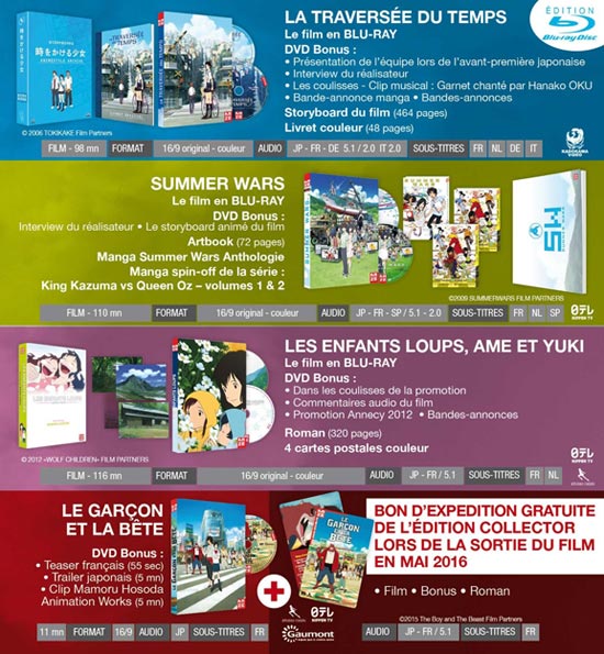 Le 16: Coffret Mamoru HOSODA Animation works Edition Collector Blu-ray