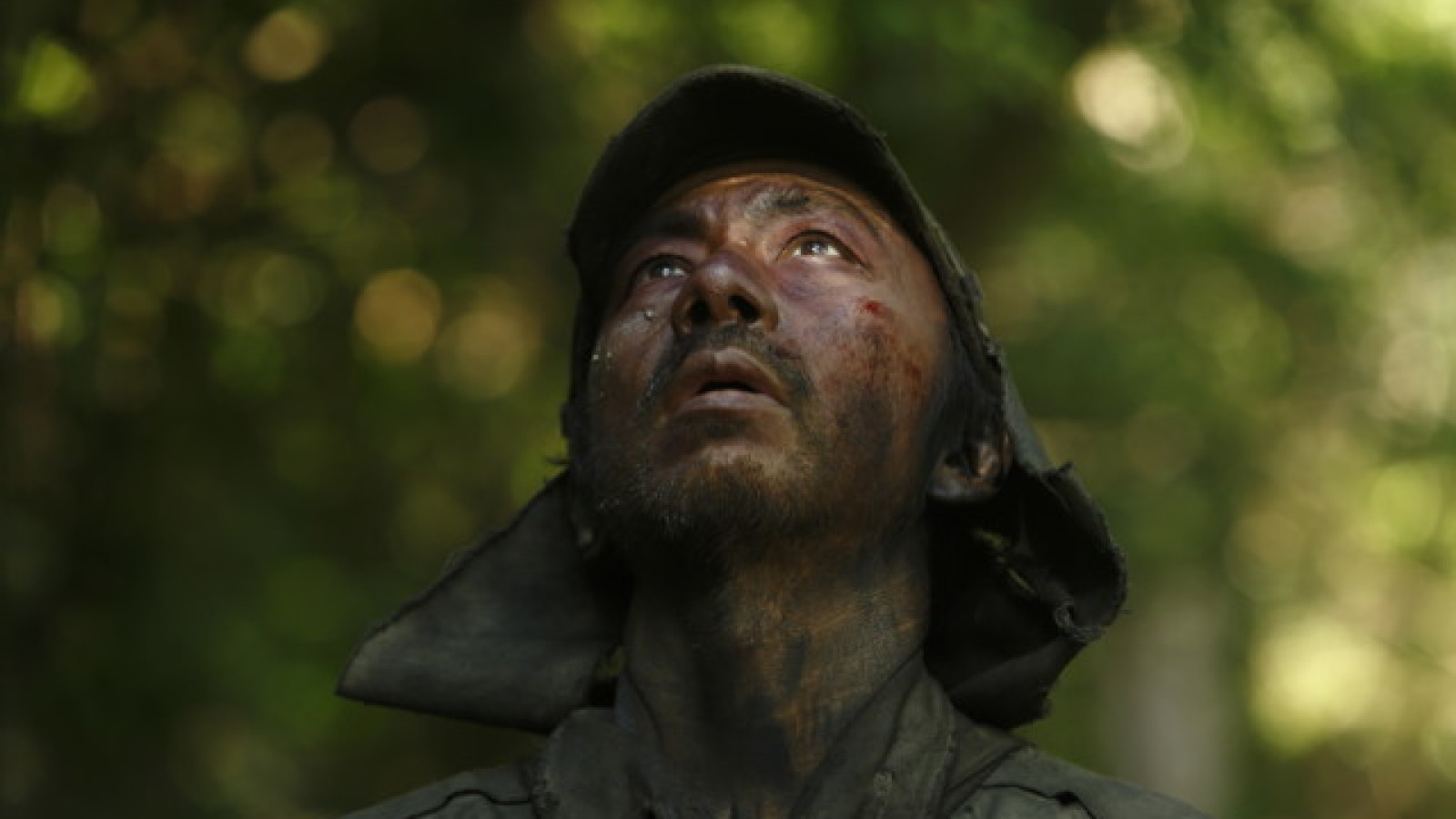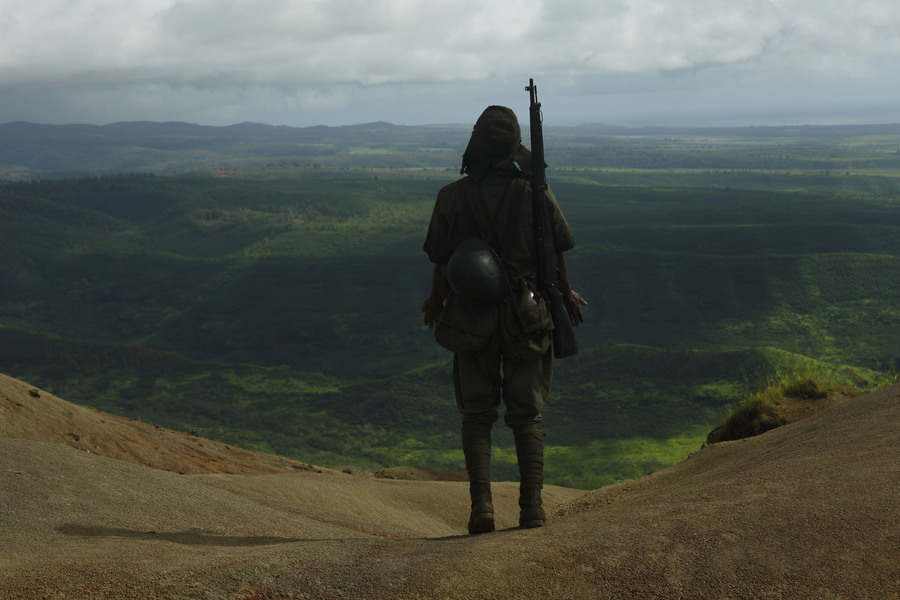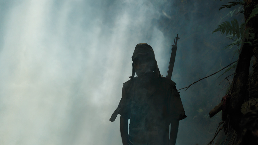 De façon étonnante, TSUKAMOTO délaisse les décors froids et urbains qui font la gloire de son cinéma depuis le premier volet de Tetsuo en passant par Bullet Ballet et A Snake Of June, une chose qu’il n’avait pas fait depuis l’inquiétant ovni Gemini, film historique qui surprend toujours autant dans la filmographie du réalisateur. Ici, Fires On The Plain nous transporte dans la jungle luxuriante des Philippines, où le vert saturé et la chaleur visiblement étouffante contrastent avec le gris baveux des buildings qui ont souvent servis de décor aux films de TSUKAMOTO.