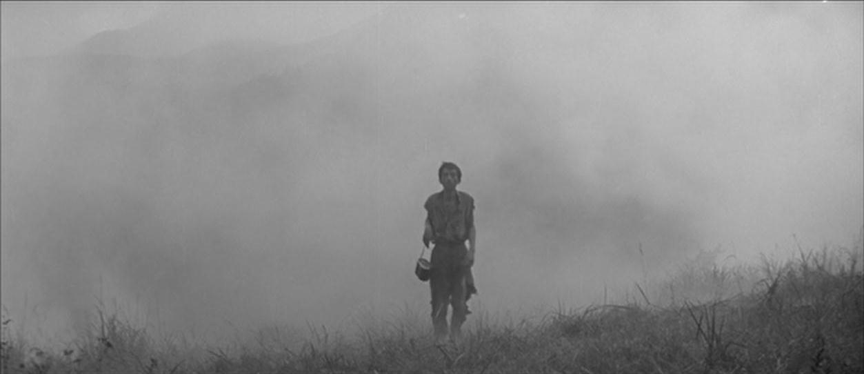 Le choix du ratio 2 : 35 (cinémascope) permet d’isoler le protagoniste, amplifier sa solitude et l’ambiance de déshumanisante. Un sentiment de désespoir total palpable jusque dans la composition des cadres, basée sur une utilisation savante de la courte focale et de sa profondeur de champ. Le cinéaste n’hésitant pas à utiliser l’amorce du cadre (l’avant plan) comme vecteur de menace potentiel pour Tamura : fusil braqué sur lui, autre soldats le menaçant… . Idem pour la contre plongée. Les rencontres entre Tamura et les autres protagonistes sont l’occasion pour le cinéaste de déjouer les conventions du classicisme, en privilégiant le champ – contre champ plutôt que de passer par une spatialisation en plan d’ensemble. Souvent dans l’ombre du célèbre trio «KUROSAWA – MIZOGUCHI – OZU» quant il s’agit d’évoquer les grands noms du cinéma japonais, ICHIKAWA n’en demeure pas moins un immense cinéaste dont le talent mériterait d’être d’avantage mis en avant.