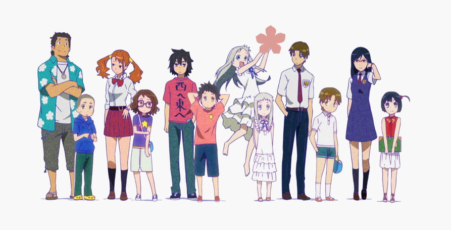 La série fut diffusée au cours de l’année 2011 et est cette fois une histoire originale des studios A-1 Pictures (Aldnoah Zero, Erased). On suit la vie de cinq amis qui ont perdu contact, et qui face à l’apparition miraculeuse de Menma vont peu à peu reprendre pied. Chacun ressent une part de responsabilité dans la mort de leur amie, et la culpabilité les a rongé depuis leur enfance. Seule leur réunion les apaisera, mais il n’est pas si facile de recréer des liens d’amitié que l’on a pas entretenu depuis longtemps. De l’eau a coulé sous les ponts, les gens ont changé. Ano Hana, c’est l’histoire de ce changement qui s’opère en nous au fil du temps, mais c’est aussi l’histoire d’une amitié qui, pas tout a fait disparue, ne demande qu’à renaître.