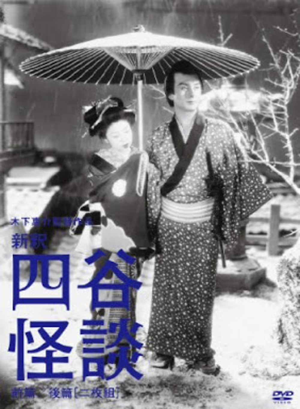 L’Histoire d’Oiwa-san est sûrement le kaidan le plus célèbre du Japon et le plus repris de l’histoire du cinéma. On compte environ 11 films entre 1928 et 1994, et d’autres s’ensuivent encore ! Toutes les versions cinématographiques de ce conte racontent le même kaidan mais varient les thèmes : du drame psychologique à la violence, jusqu’à la comédie. La première version notable de ce conte est Le fantôme d’Oiwa (Yotsuya Kaidan) – en 2 parties – réalisé par Keisuke KINOSHITA en 1949. Cette version particulière est un drame. Il enlève les éléments surnaturels du kaidan original, et est transformé en conte à morale à propos de la loyauté et de la fidélité. Le réalisateur présente Oiwa comme un élément de la culpabilité de Iemon, sous la forme d’hallucinations. Dans cette histoire Iemon et Oiwa sont mari et femme, mais Iemon meurt d’envie de s’échapper de ce mariage, et va comploter pour se débarrasser d’elle. Cette version privilégie la vie des personnages, leur situation, leur comportement, au détriment du fantastique qui n’est pas du tout le sujet.