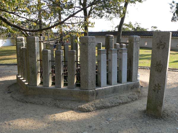 C’est dans la préfecture de Hyôgo qu’on trouve la ville de Himeji, où le conte d’Okiku est célèbre. Dans cet ancien conte, une servante casse de la porcelaine précieuse et se fait punir par son maître en se retrouvant pendue à un arbre. Nous l’avons déjà observé auparavant, mais dans sa version la plus connue, son maître la pousse dans le puits du château où elle périt. Ce récit se déroule donc au château Himeji, construit aux environ du XVIIe siècle, qui est l’un des plus beaux châteaux du Japon. Il est aussi connu pour avoir été la demeure du daimyo Hideyoshi TOYOTOMI pendant la période Sengoku et il est inscrit en 1993 au patrimoine mondial de l’UNESCO. C’est en tout cas là-bas que se trouve le puits où Okiku serait morte et des légendes racontent qu’à la nuit tombée des pleurs s’en élèvent… Un autel en son honneur fut construit autour, et c’est depuis ce jour que ce puit est peuplé de papillons machaon, rappelant qu’Okiku est aussi vénérée comme une déesse des insectes. S’il s’agit de l’histoire la plus célèbre d’Okiku, pour chaque région du Japon où se trouve un château et un puits, il y a presque systématiquement une légende pour Okiku. Elle ne s’appelle pas toujours Okiku – et ne casse pas à chaque fois des assiettes – mais les mêmes détails les rapprochent…