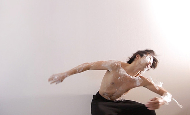Je commence à m’intéresser au butō. Sans pour autant tomber dans la caricature, si le corps des japonais est aussi adapté à ce type de danse, c’est parce que le corps japonais a eu l’habitude de se pencher, de s’accroupir et de s’agenouiller. La physionomie japonaise est vraiment adaptée au butō. Dans la représentation, on peut trouver des éléments rappelant sans doute le butō, mais ils sont davantage liés à ma physionomie.