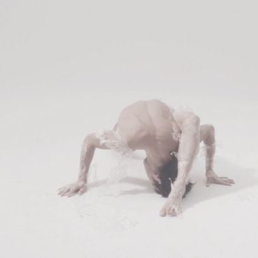 Pour ce qui est du concept, mon corps est recouvert d’une espèce de membrane translucide. Un peu la même que pour les médicaments, vous voyez ? (rires) Ce qui est intéressant, c’est qu’avec ma transpiration pendant que je danse, la membrane devient plus malléable et se colle à ma peau. Cependant, elle se durcit ensuite très rapidement et se craquelle. Certains lambeaux tombent, d’autres se mêlent directement à ma peau.