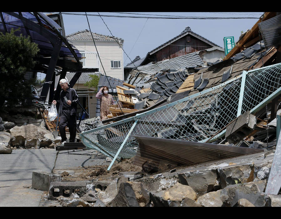 Le 14 avril à 21h26, un séisme d’une magnitude de 7 sur l’échelle de Shindo (dont le maximum est 7, contrairement à l’échelle de Richter) secoue Kumamoto, suivi d’un nombre impressionnant de répliques de moindre puissance. Le 16 avril à 1h25 survient un second séisme d’une force équivalente. L’épicentre étant de faible profondeur, dix kilomètres (lors de la catastrophe de Sendai, l’épicentre se trouvait à 32 kilomètres sous le sol), ce qui a rendu ce séisme particulièrement destructeur. Fort heureusement, les réacteurs nucléaires à proximité ont été épargnés, mais on dénombre 49 morts et 100 000 personnes se sont retrouvées sans-abri du jour au lendemain. Des éléments du patrimoine culturel local en ont également fait les frais, comme le château de Kumamoto (ci-contre).