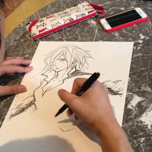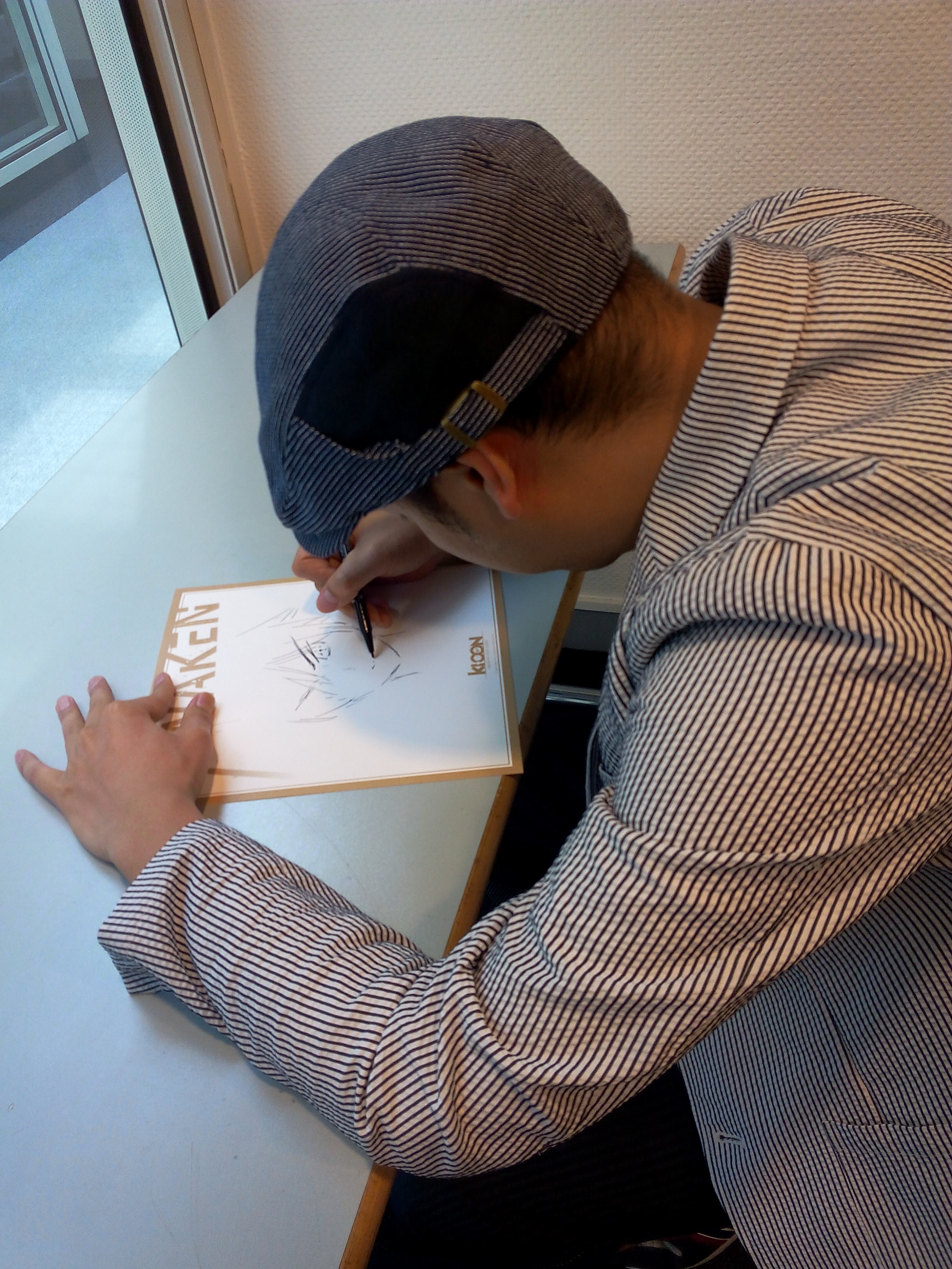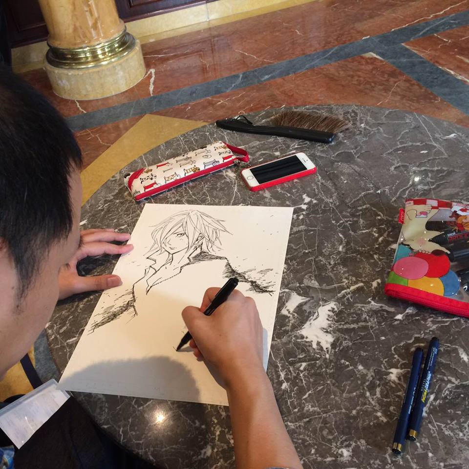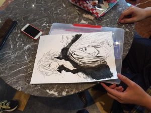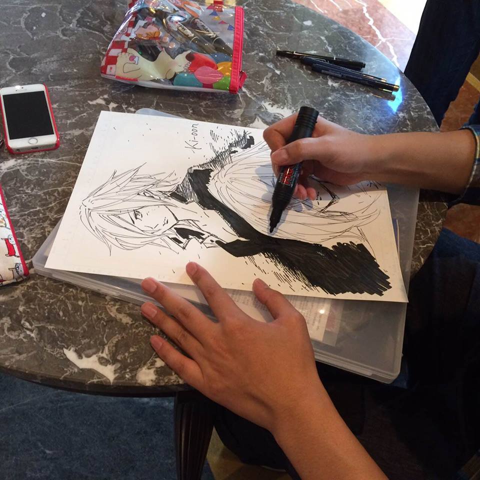 Hitori RENDA réalise un dessin pour remercier son éditeur français