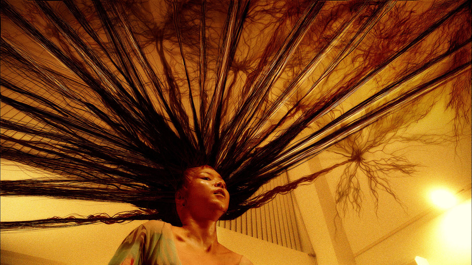 C’est donc sur ce postulat de départ relativement absurde s’il en est – des extensions capillaires qui tuent – que Sion SONO bâtit son film, poussant ainsi au bout du bout le concept de la J-horror (après les cassettes vidéos et les téléphones portables hantés, les cheveux possédés !). Il le fait avec malice en détournant habilement un motif récurent chez les spectres féminins du folklore japonais : la longue chevelure, elle même devenue synonyme de fantôme assoiffé de vengeance (Sadako n’était que la réactualisation moderne de cette figure folklorique classique).