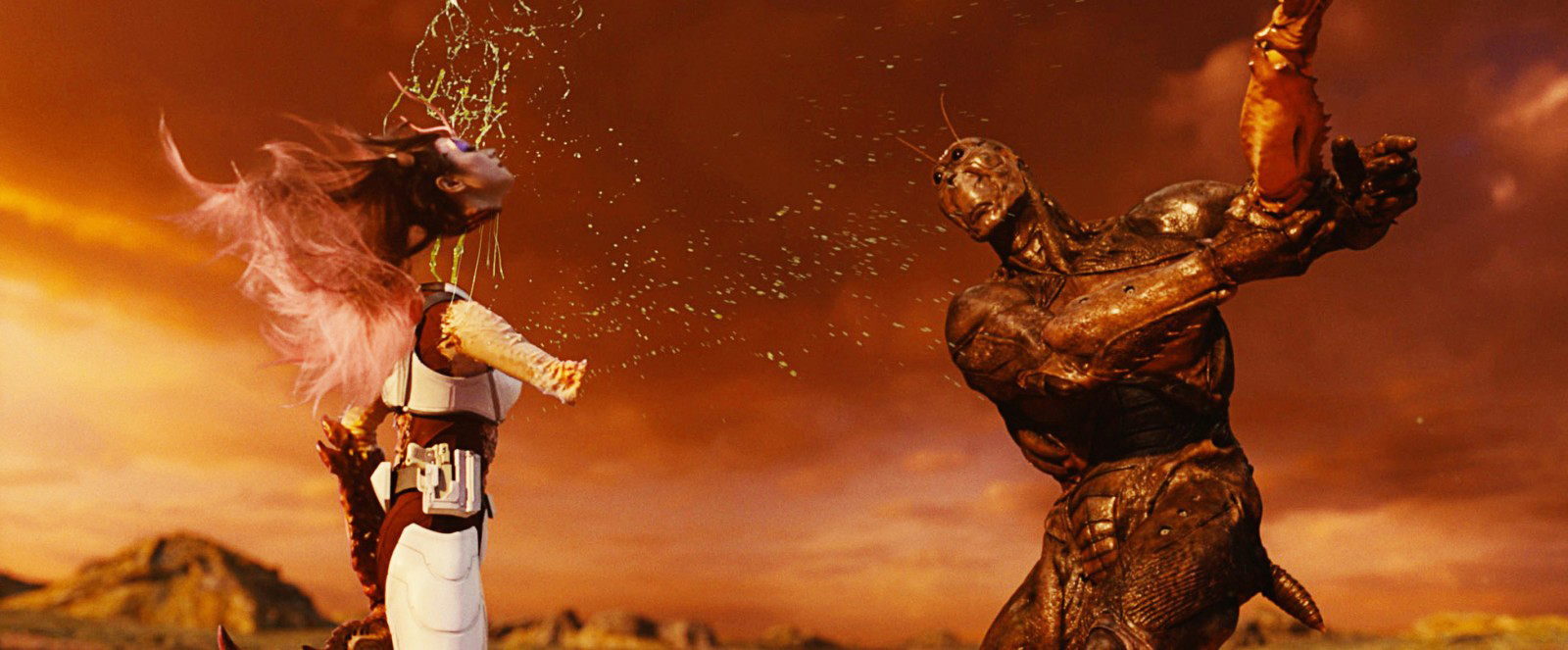 Certains aspects de l’adaptation de Terra Formars (l’univers à la croisée de Blade Runner et du Cinquième Élément dépeignant une société multiculturelle marquée par une grande pauvreté) ne sont pas sans évoquer certaines des grandes heures de MIIKE (la trilogie Dead Or Alive ou City of Lost Souls). Cependant, il n’en est pas fait grand chose, cette dimension étant évacuée dès que l’on quitte la Terre. C’est d’autant plus dommage qu’on sent bien que des moyens ont été mis dans la direction artistique, malgré certains effets spéciaux moins réussis. De même, l’aspect volontairement sentai (les maquillages des personnages et leur transformation) suppose une dose certaine de kitch qu’on ne reprochera donc pas au film. Cependant, s’il constitue une proposition intéressante, il se heurte au véritable problème du métrage déjà évoqué plus haut : une exposition – et plus généralement narration – bordélique, un problème de rythme et surtout, une abondance de personnages absolument pas développés desquels on se désintéresse très vite.