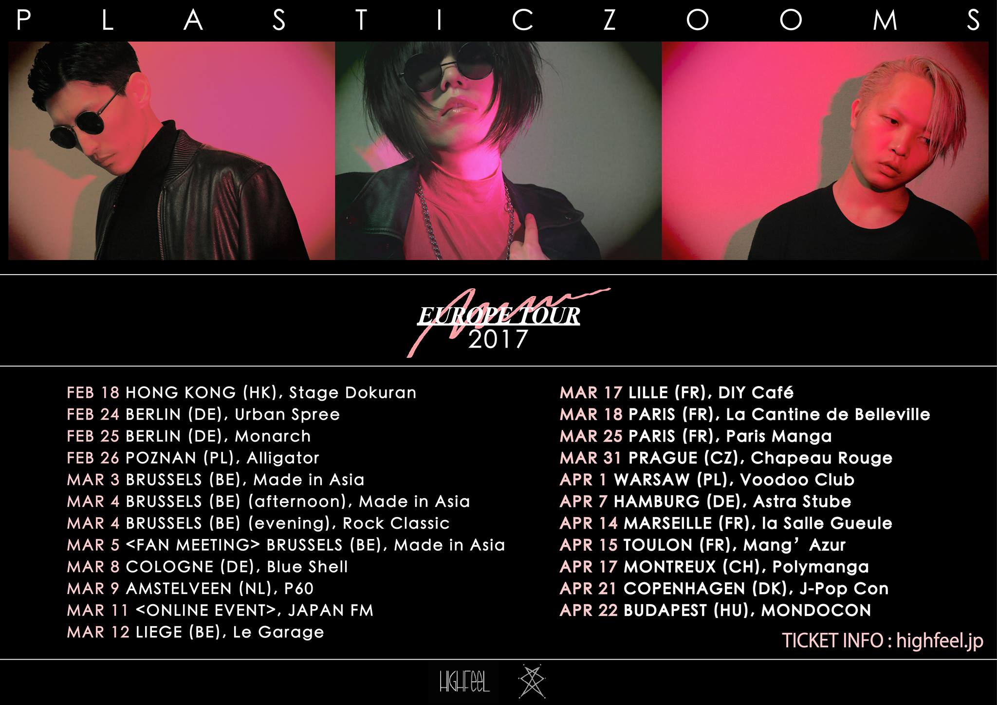 Le groupe Plasticzooms sortira un nouvel album le 11 janvier prochain et enchaînera sur une tournée en 2017 avec plusieurs dates en Belgique et en Suisse début mars et surtout trois dates en France, avec HighFeel.