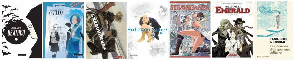 L’année aura ainsi été marquée par la traduction française de 6 nouveautés aux visuels marquants, dont Deathco (et ses fameux T-shirts !) et Stravaganza – la Reine au Casque de Fer. Les amateurs de Hiroaki SAMURA ont quant à eux eu droit à une triple dose de l’auteur avec Snegurochka, Halcyon Lunch et Emerald. L’année a également été marquée pour Casterman par la venue d’Ayako NODA (Le monde Selon Uchu) au festival d’Angoulême.
