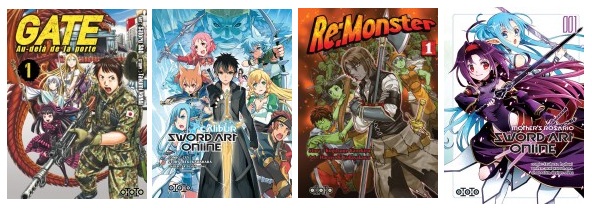 Ototo de son côté a licencié 4 nouvelles séries : Gate – Au-delà de la porte, Re:Monster, ainsi que Sword Art Online – Calibur et Sword Art Online – Mother’s Rosario.