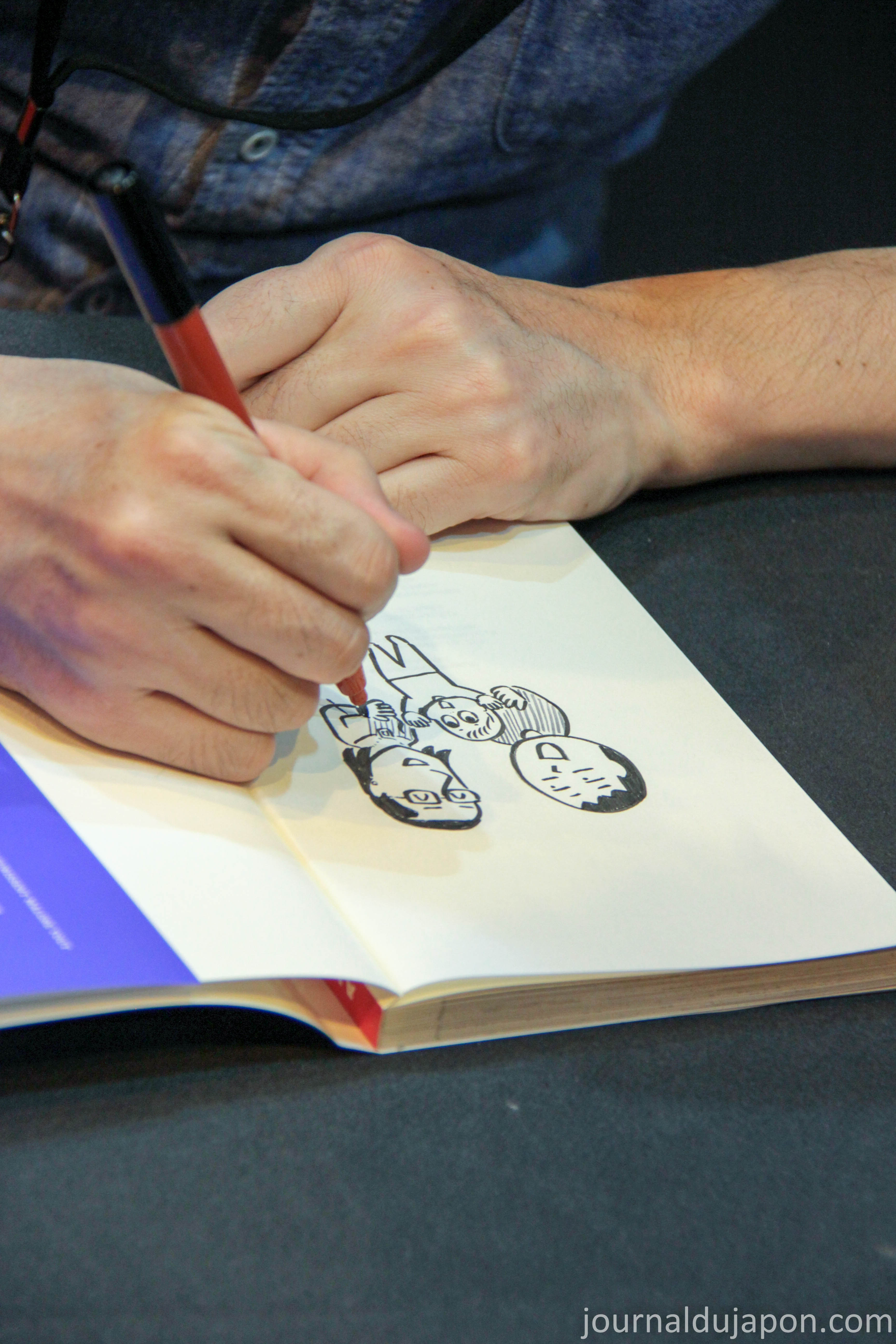 Les gens ! Leur spontanéité. Les dédicaces se font naturellement. Tout semble facile. C’est agréable d’échanger, de dessiner ses interlocuteurs. Ce serait inimaginable au Japon.