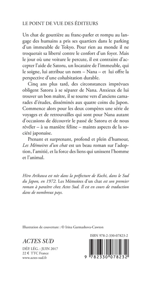 Les livres sur les chats sont très nombreux au Japon. Ce dernier ouvrage tendre et émouvant devrait ravir les lecteurs du Je suis un chat de Sôseki, mais également les amateurs de belles histoires entre souvenirs d’enfance et réflexions animales. En route pour découvrir Les mémoires d’un chat, de Hiro ARIKAWA…
