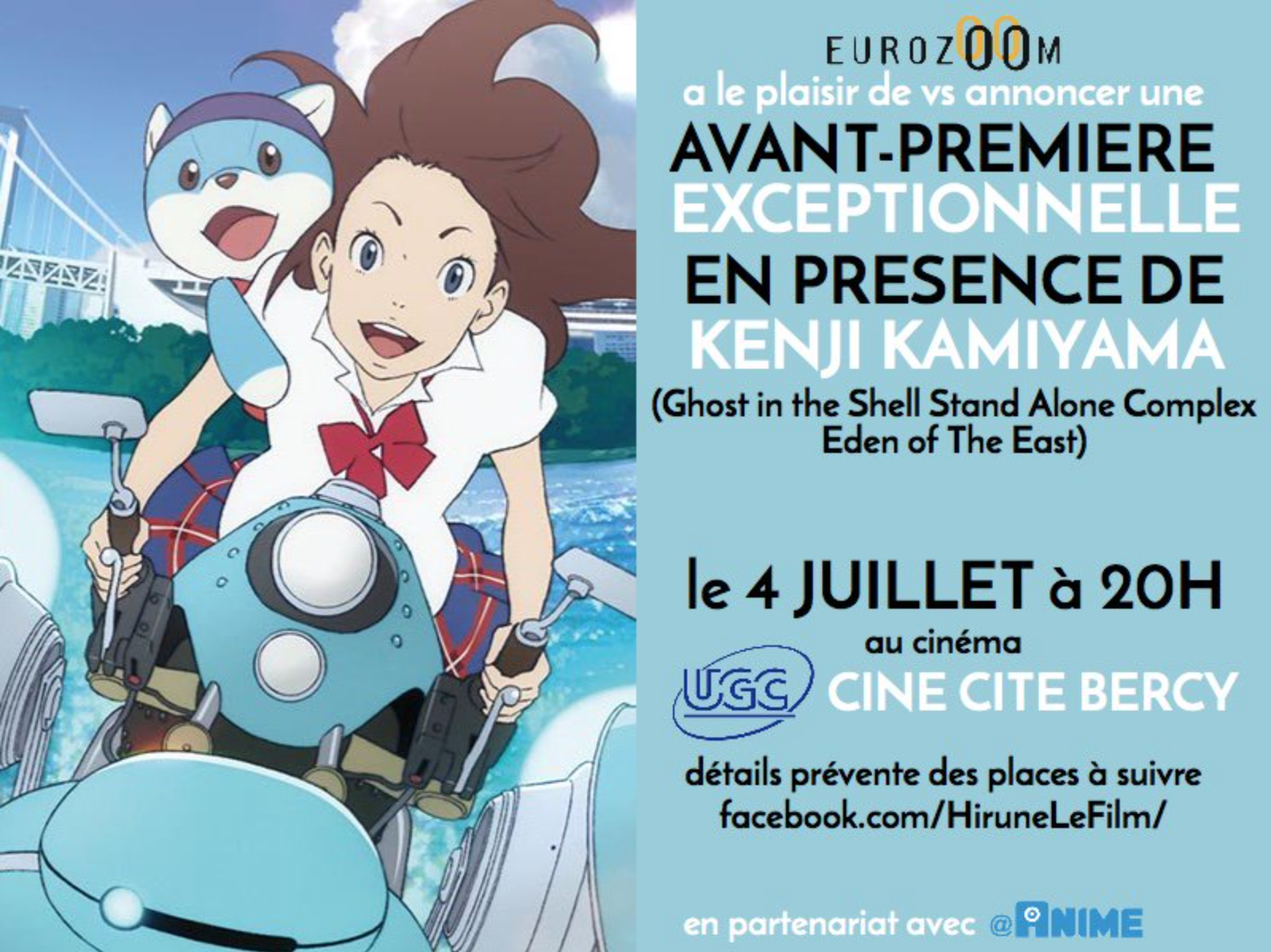 Hirune Hime sera en avant-première à Bercy en présence du réalisateur Kenji KAMIYAMA en partenariat avec @Anime et Eurozoom.