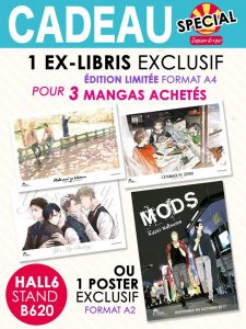 L’éditeur sera présent sur le stand Anime store + Boy’s Love comme l’année dernière ! Vous ne le trouverez donc pas du côté éditeur, mais plutôt côté HALL 6 ! Ce dernier, en supplément de ce qui est d’ores et déjà disponible via ses abonnements, proposera à ses lecteurs de repartir avec un ex-libris pour 3 mangas achetés ou avec un poster exclusif.