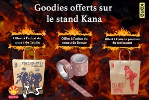 Les éditeurs manga essaient chaque année de satisfaire leurs lecteurs ! Résultat, pour des achats manga vous pourrez obtenir quelques goodies inédits, créés pour l’occasion. Ainsi badges, posters, tote bag, marque-pages ou encore masques feront partis de votre panier si vous vous y prenez bien. Un bon moyen de préparer votre venue sur le salon en vous préparant une liste de livres à acheter pour l’occasion !