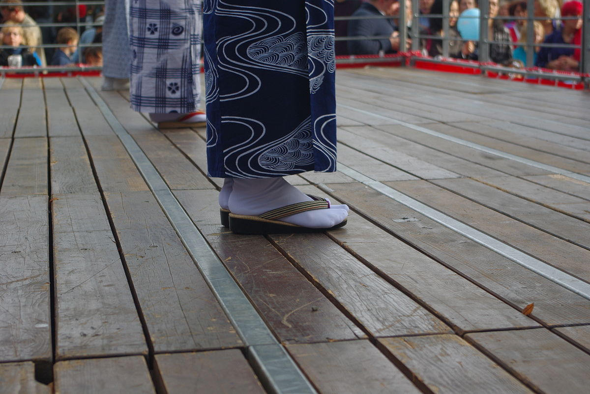 Pour finir la tenue comprend également les chaussures à un orteil et les chaussures appelés zori.