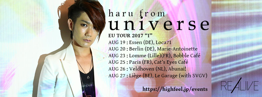 Haru from universe est un chanteur, compositeur et arrangeur musical japonais originaire de Saitama. Il est connu pour son single Echoes une chanson thème de l’anime Bleach. Les billets sont en vente sur le site de Highfeel.