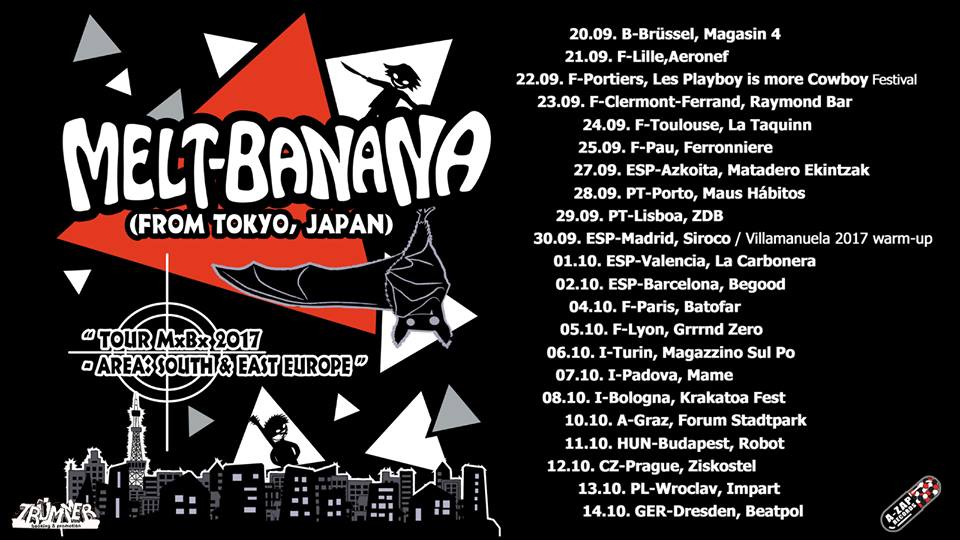 Melt banana est un groupe de noise rock et punk hardcore japonais, originaire de Tokyo et qui est de retour en Europe pour une longue tournée. Pour notre plus grand plaisir plusieurs dates sont disponibles en France et en Belgique. Pour en savoir plus sur eux, retrouvez notre interview du groupe, ici.