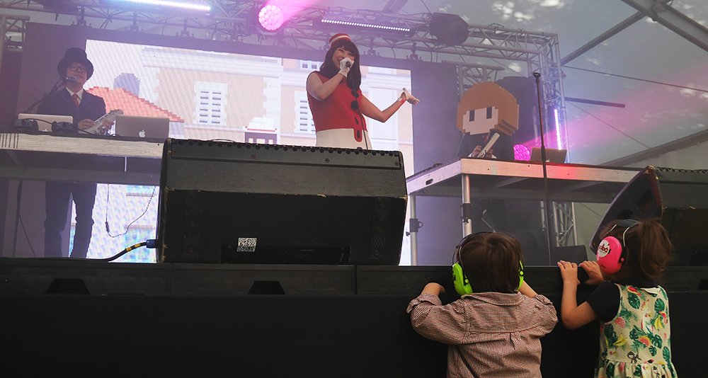 YMCK est un groupe de 8-bit assez connu par les amateurs du genre en France, notamment grâce à NoLife qui diffuse abondamment leurs morceaux. Le trio, qui existe depuis 2003, est constitué de Takeshi YOKEMURA, Midori KURIHARA et de l’énigmatique Tomoyuki NAKAMURA qui ne quitte jamais son masque. Le festival La Magnifique Society les a invité pour sa première édition, dans le cadre de sa programmation dédiée aux scènes électro et hip-hop japonaise. C’était l’occasion rêvée pour le groupe de présenter son nouvel album, Family Swing.