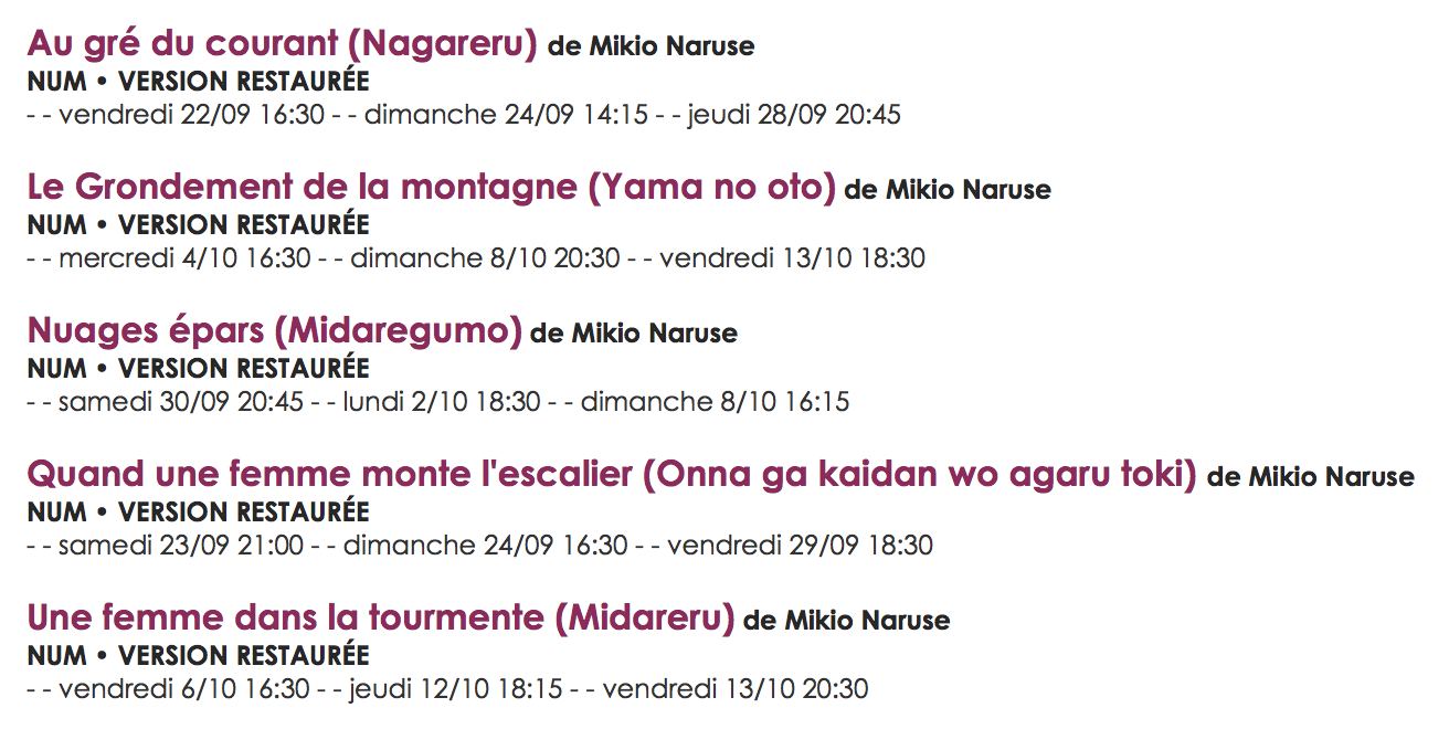 Du 22 septembre au 13 octobre: Retrospective Mikio NARUSE