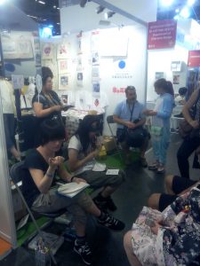 En fait c’est notre troisième année de participation à Japan Expo. À la base, le département de Character Design vient dans le but d’un échange international, mais aussi pour découvrir quels types de produits ou de marchés fonctionnent en France, en Europe… Pour nous c’est aussi l’occasion d’apprendre ce qui se passe ici en Europe.