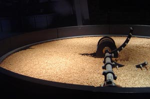 Pendant quarante-huit heures, l’orge doit être humidifiée afin d’activer l’amidon qu’elle contient. Quand elle atteint 40 % d’humidité, l’orge est étalée afin de provoquer sa germination. L’amidon libéré se transforme alors en une sorte de farine blanche qu’il est nécessaire de mélanger plusieurs fois par jour afin de conserver une température constante mais aussi afin d’éviter que les germes s’aglutinent entre eux. Quand les germes mesurent deux millimètres, ils sont envoyées au four pour le séchage. C’est la tourbe (compost de végétaux) qui en se consumant dans le feu, donne de l’arôme à aux germes d’orge ou malt vert.