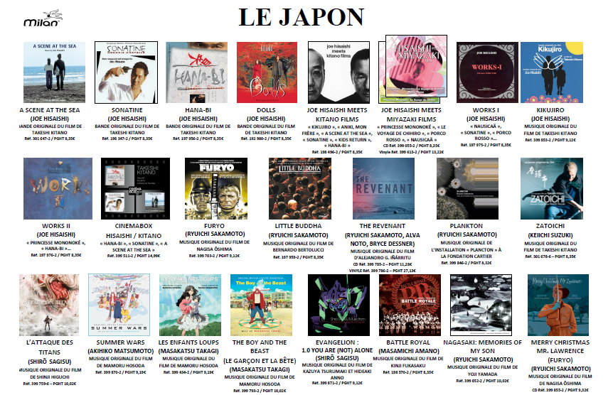 Milan Music a toujours eu une relation particulière avec le cinéma japonais. D’une manière générale nous gardons toujours un œil sur les sorties étrangères qui ont un potentiel international (La Cité de Dieu, Le Labyrinthe de Pan, Le Mariage des Moussons). Le Japon a une belle industrie cinématographique et de très bons compositeurs avec un style bien a eux. Nous sommes le premier label à avoir sorti des bandes originales de Joe HISAISHI avec Sonatine, Hana-Bi et Kikujiro.
