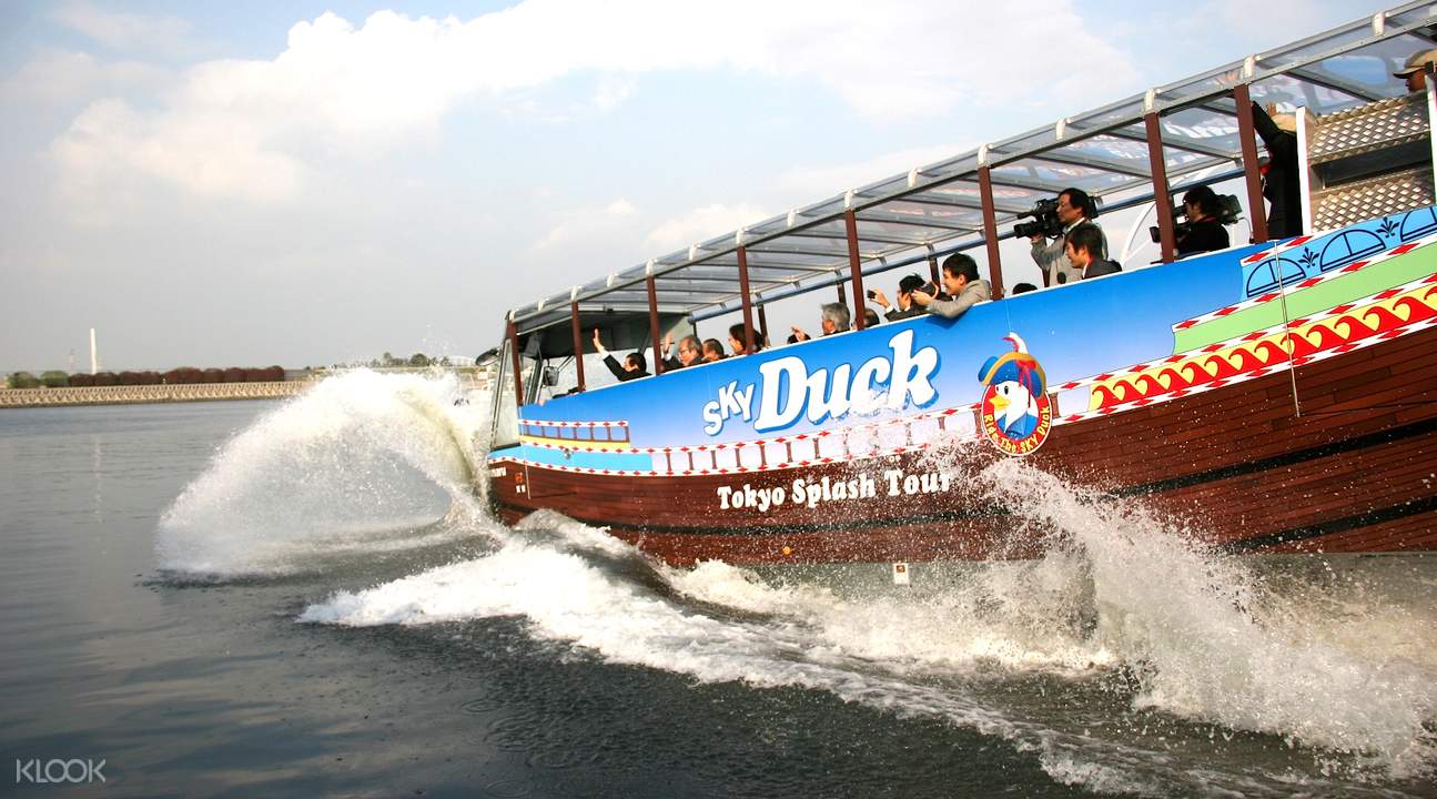 Le trajet en bus démarre sur la route, jusque-là tout est normal, mais vient ensuite le moment où il plonge dans l’eau de la baie de Tokyo, rendant tout de suite la visite plus insolite. Ce bus est une excellente entrée en matière pour découvrir la ville, des explications en plusieurs langues étant données aux endroit clefs.