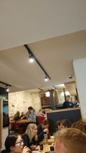 Il semblerait que là aussi le restaurant ne soit pas en service continu et fonctionne sans réservation. Prévoyez donc votre visite en conséquence (11h30-15h et 18h30-22h, fermé le mardi). L’ambiance reste chaleureuse par les tonalités ambiantes, mais, encore une fois, gare au coup de feu du service !