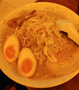 Situé dans le quartier d’Opéra, proche de la rue Sainte Anne, le restaurant est un peu excentré mais reste néanmoins accessible facilement. Il y a moins de places que dans les autres restaurants cités, et vous pourrez vous sentir vite oppressé si vous êtes installés au comptoir lors du coup de feu ! Nous vous conseillons donc de privilégier, si possible, des horaires autres que ceux classiques. Le tarif rejoint celui de Kodawari et Hakata, donc rien à redire, c’est le tarif parisien. Niveau boisson, que du classique avec de la bière et du soda, ce qui est un choix suffisant tant le ramen est copieux. Beaucoup de légumes, dont du chou en effet dans le bol ! Afin d’aller plus vite lorsqu’il y a du monde, vous pouvez commander avant de rentrer dans le restaurant : une fois une place libérée à l’intérieur, le ramen arrive alors assez vite.