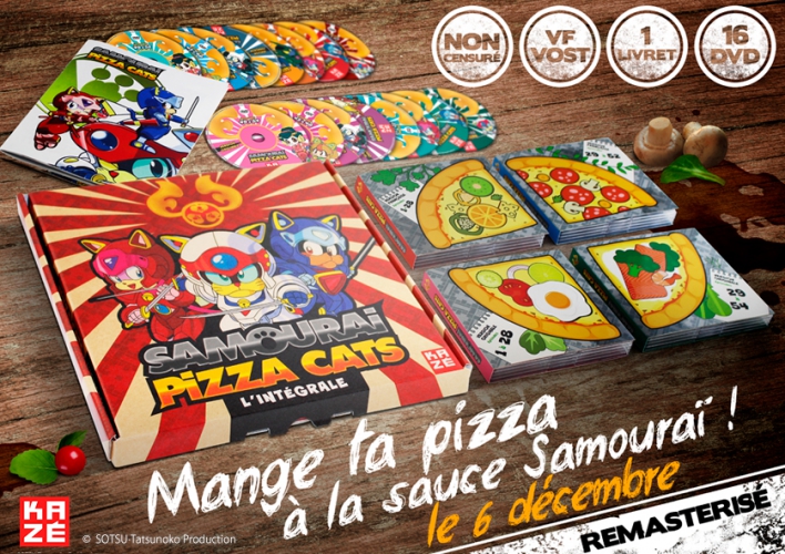 Résumé officiel : « Au Japon, dans une ville sympathique mélangeant modernisme et tradition, il y a une pizzeria très réputée, quartier général de tous les amoureux de spécialités italiennes, servies par les espiègles et intrépides Polly, Speedy et Guidon. Un dragon maléfique fait son apparition et terrorise les habitants. Mais ce n’est qu’un simple pantin manipulé par un corbeau guerrier, Ducrochu, et son maître, Dusournois, un renard fourbe. La ville fait appel aux talents des trois drôles de chats ninjas qui vont revêtir leurs armures de samouraï et combattre les forces du mal. Accrochez-vous, ça va chahuter ! »