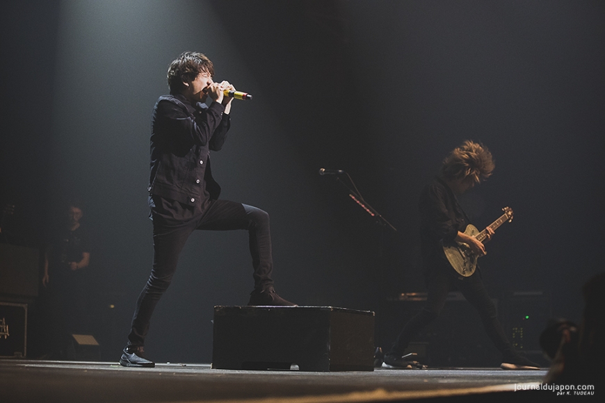 Ce public a été magistral lors de Hard to Love. Durant cette ballade, Toru jouait de la guitare assis devant la batterie. Ryota avait sorti un archet pour jouer de sa contrebasse électrique, alternant archer et doigts. La salle écoutait silencieusement le chant de Taka, puis plein de petites étoiles ont illuminé gradins et fosses : les spectateurs avaient sorti leur smartphone pour s’en servir de bougies, ce fut un moment magique.