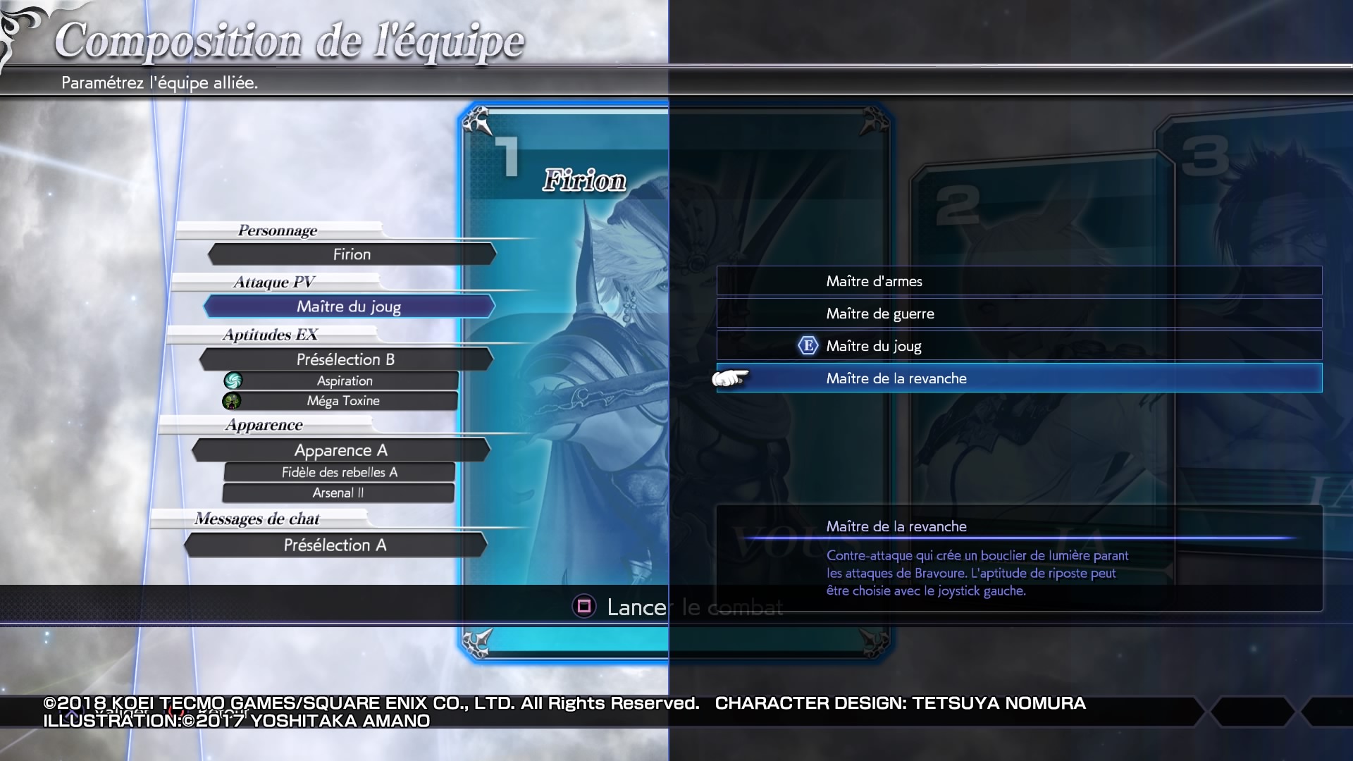 Les affrontements en équipe offrent également leur part d’inédit. Si les composantes RPG étaient présentes dans les interfaces lors des anciens Dissidia, nous les retrouvons ici dans les combats. Effectivement, les guerriers disposent de capacités permettant une multitude de compositions. Outre les quatre grandes classes Combattant, Assassin, Tireur et Spécialiste, leurs aptitudes Ex Unique peuvent avoir des effets bénéfiques sur leurs alliés, ou au contraire saper les forces adverses. Beaucoup de héros ont également une manière d’être joué spécifique, comme Butz qui renforce ses attaques à mesure qu’il les utilise, ou Garland qui gagne en puissance à chaque fois qu’il touche l’adversaire mais risque de perdre ses buffs s’il rate la cible.