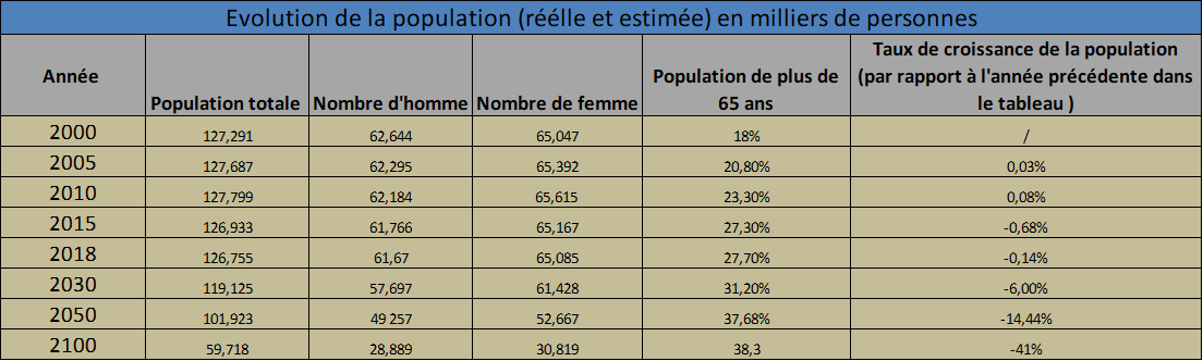 La situation démographique au Japon en chiffre