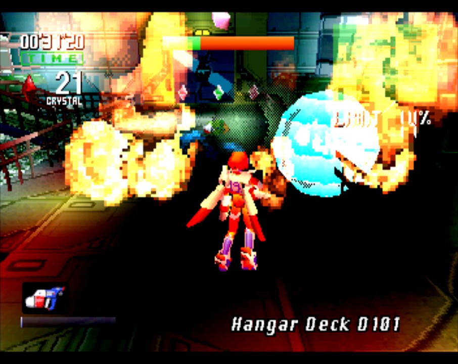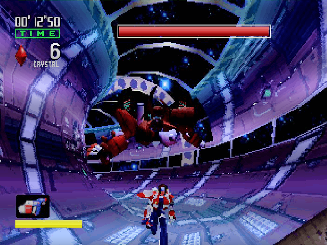 Il reste à parler de la bande-son. Et à vrai dire… il n’y en a pas vraiment. Hormis quelques thèmes principaux chantés (« Angels with Burning Hearts » en opening dynamique et entêtant, « We are Burning Rangers » ou « I Just Smile » en ending, contrastant nettement par une douceur inattendue), seuls quelques accompagnements discrets soulignant certains passages sont à signaler. Mais effacez votre regard dubitatif, l’ambiance est menée tout simplement par une très bonne maîtrise des bruitages. Comme si l’on y était, les rumeurs d’incendie au loin sont brisées par celui des pas et sauts du Ranger en action. Le sifflement caractéristique qui prévient d’une explosion imminente est reconnaissable entre mille. Les affrontements de fin de niveau ont eux aussi un thème, dynamique et évoluant à chaque attaque réussie sur l’ennemi, mais on sent un peu trop nettement qu’il s’agit au final de petite boucles empilées pour créer une mélodie complète.