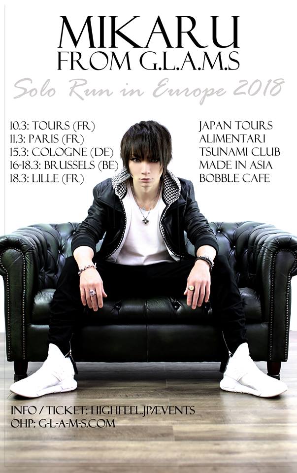 Cette année c’est le chanteur Mikaru qui viendra faire une performance lors de la convention Japan Tours festival. Il sera sur scène le samedi 10 mars. Le dimanche 11 mars il sera à Paris au Alimentari puis la scène belge de la convention Made in Asia du 16 au 18 mars et terminera au Bobble café de Lille le dimanche 18 mars.