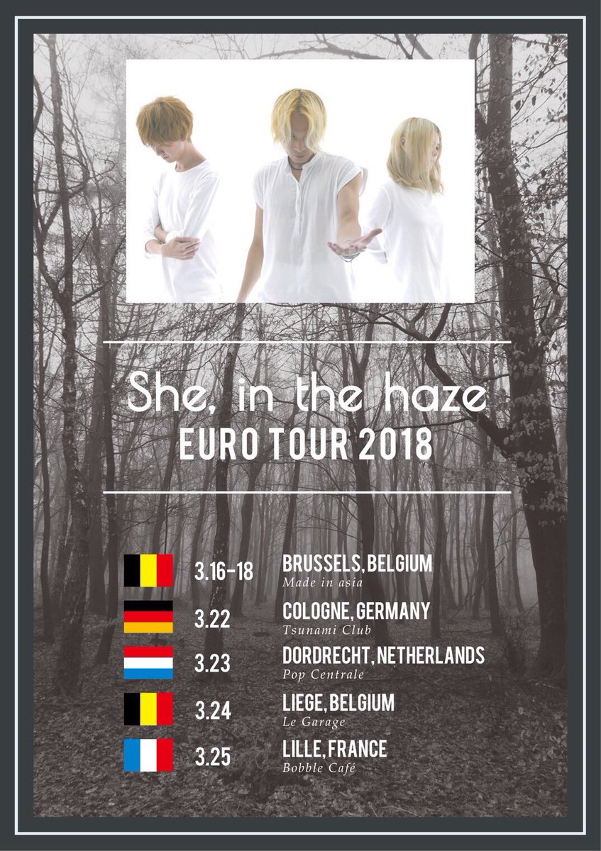 Le trio pop rock she, in the haze sera présent à la convention belge Made in Asia en mars prochain. D’autres dates sont susceptibles d’être annoncées. Le trio ne fera qu’une seule date en France à Lille le dimanche 25 mars au Bobble café.