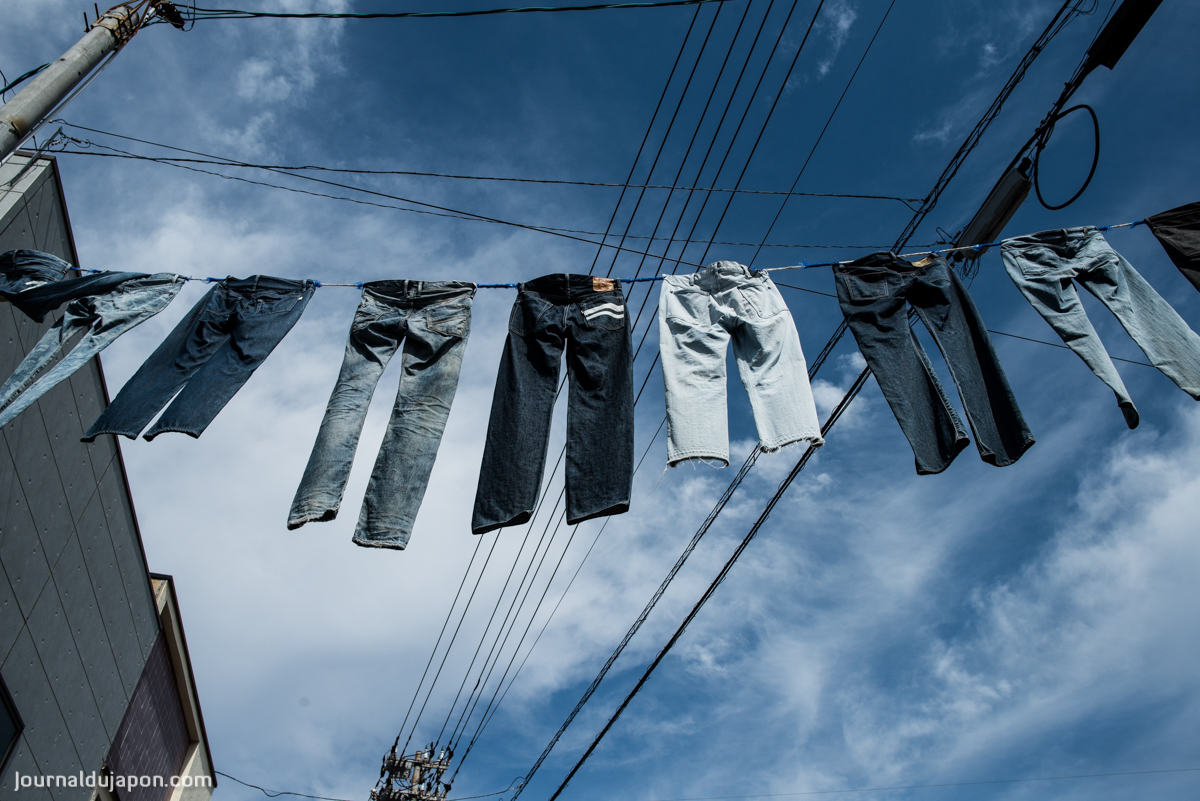 Déjà à l’époque Edo (1603-1868), Kurashiki se bâtit une réputation dans l’ensemble du pays en produisant le coton tressé utilisé pour les manches de katana, puis pour la production de chaussettes tabi à partir de l’ère Meiji (1868-1912). Avec l’arrivée de l’ère Showa (en 1926), Kurashiki sera vite connue comme « la ville de l’uniforme scolaire », élément si caractéristique du Japon. Seulement, avec les années 60, vient le déclin du marché de l’uniforme. Si, encore maintenant, plus de 70% des uniformes scolaires de l’ensemble du pays sont fabriqués à Kurashiki (par la compagnie des uniformes scolaires Akashi, entreprise créée en 1865), c’est sur le terrain du jean que se sont recentrés de nombreux artisans de Kurashiki dès cette période.